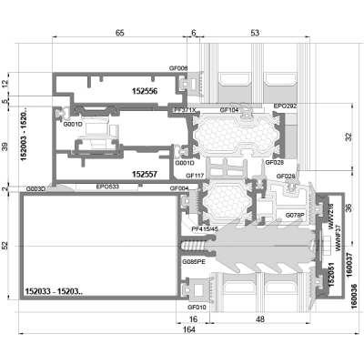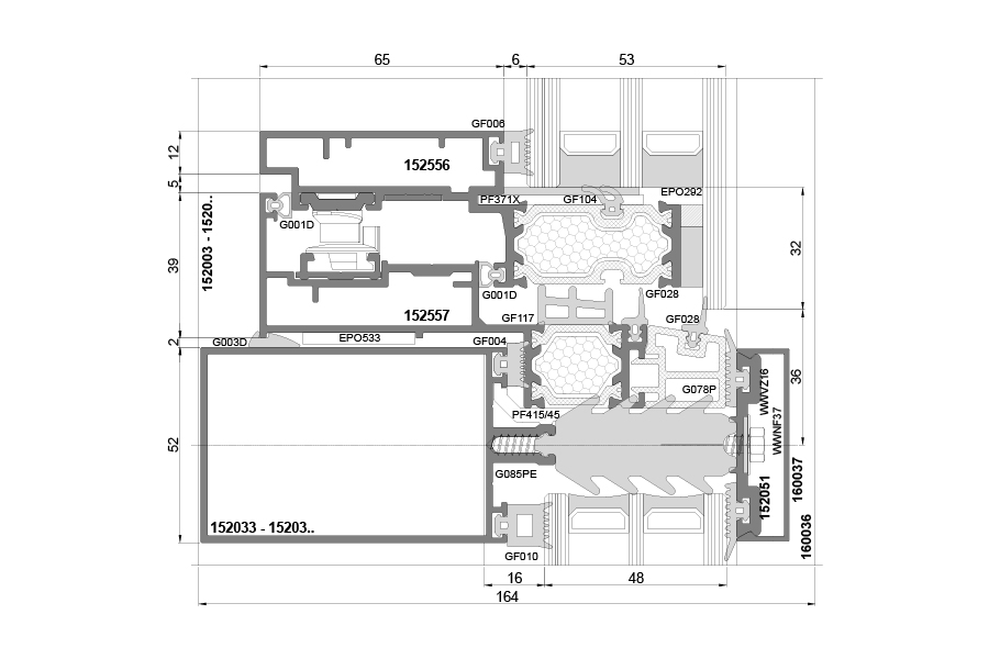 Ponzio PF 152 sistēma ar siltumizolāciju. Ponzio PE 152 sistēmā var izmantot stikla paketes vai paneli ar biezumu līdz 66 mm. Profila sistēma ļauj izgatavot ārējās piekārtās stiklotās fasādes. Var tikt izgatavota konstrukcijas ar ugunsdrošības klasi EI60.