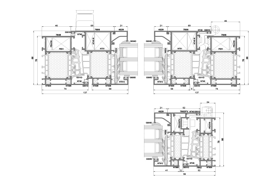 Ponzio PE 78 profilu sistēma ar siltumizolāciju. Konstruktīvais profilu iebūves dziļums rāmjiem sastāda 78 mm, bet vērtnēm 86 mm. Ponzio PE 78 sistēmā var izmantot stikla paketes vai paneli ar biezumu līdz 61 mm. Tā ļauj izgatavot liela gabarīta konstrukcijas ar pastiprinātajiem alumīnija profiliem.