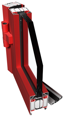 Ponzio PE 78EI alumīnija ugunsdrošā sistēma ar siltuma izolāciju. Ponzio PE 78EI sistēmā izmanto stikla paketes ar biezumu līdz 54 mm.